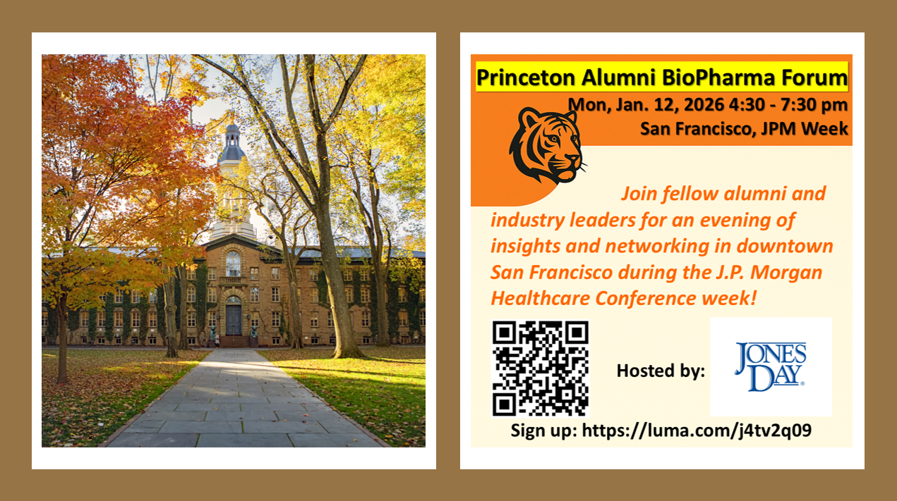 The Princeton Life Sciences Alumni Group is organizing the Princeton Alumni BioPharma Forum during the J.P. Morgan Healthcare Conference week. -